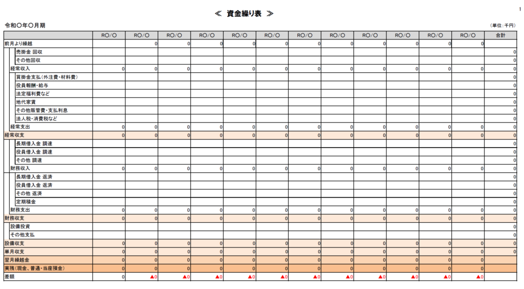 資金繰りのクセを把握するため、最低でも過去1年分の実績資金繰り表を作成することを強く推奨します。